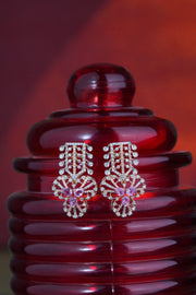 18KT Gold Pink Sapphire & Diamond Floral Drop Earrings
